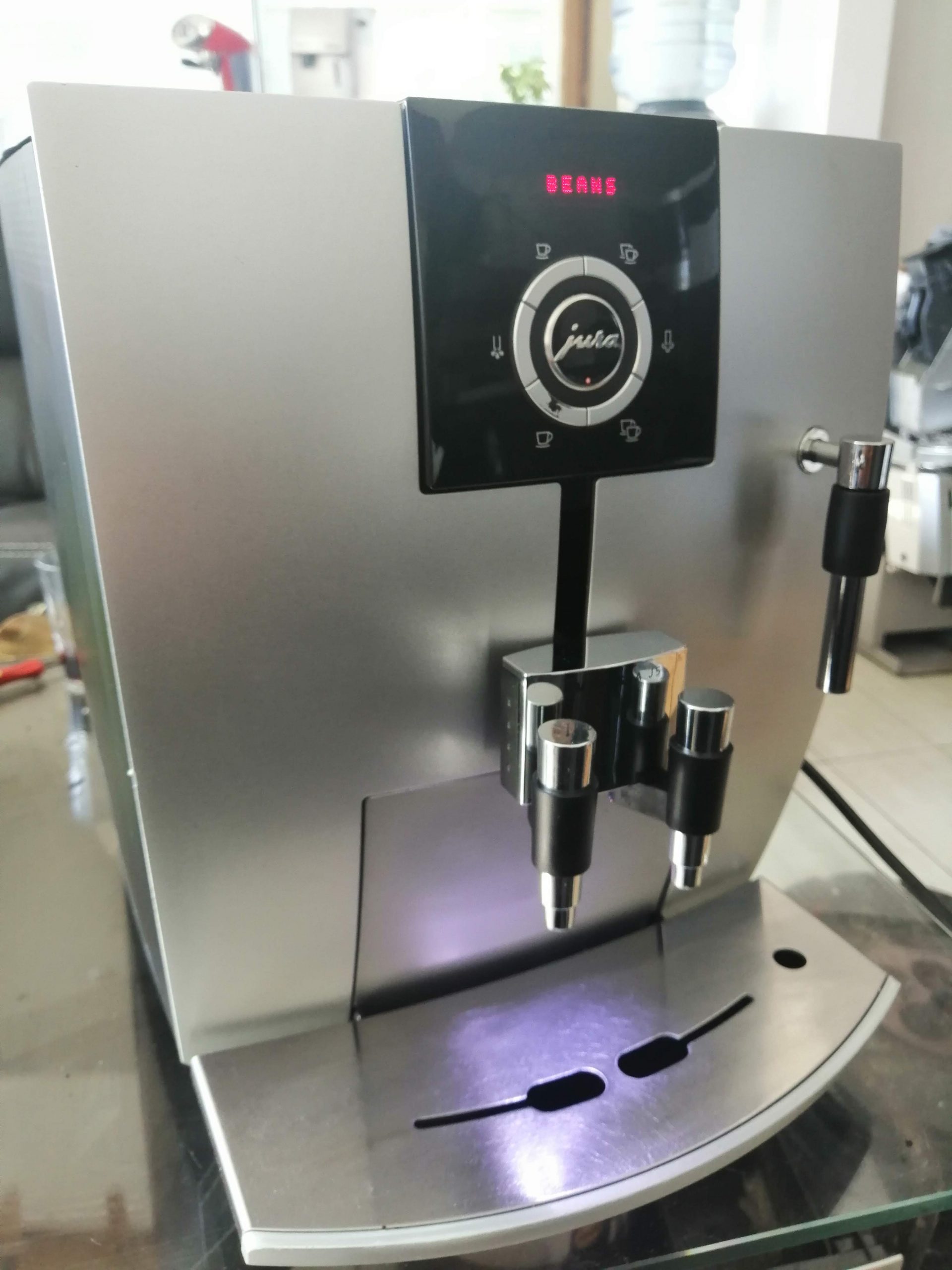 Jura Impressa J5 automatski espreso aparat servisiran garancija 6 meseci Aparat ima integrisan mlin za espreso kafu u zrnu, za pripremu svakog espresa melje svežu kafu. Priprema espresa, kafe…. Mogućnost odabira jačine i dužine kafe. Led osvetljenje šoljice Tekstualni displej, meni sa raznim opcijama. Podešavanje visine istakača za kafu naspram visine šoljice. Programi za ispiranje, čišcenje i dekalcifikacija.